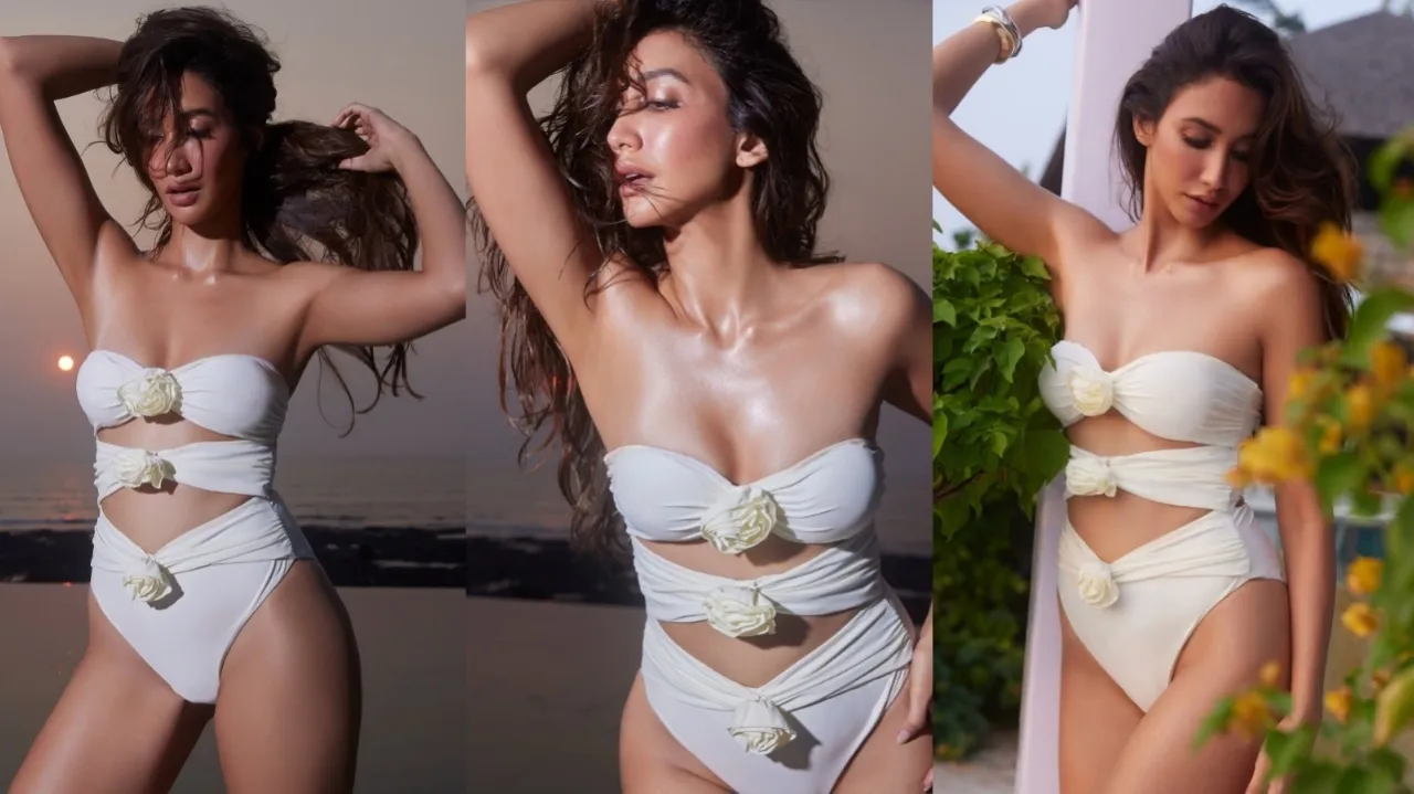Sizzling hot Shreya Chaudhry in white monokini bikini